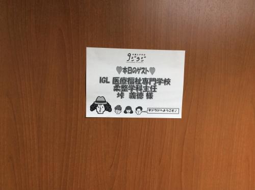 12/12(火)、HFM(広島エフエム放送)の人気番組『大窪シゲキの9ジラジ』に柔整学科の垰(TAO)先生が生出演しました!